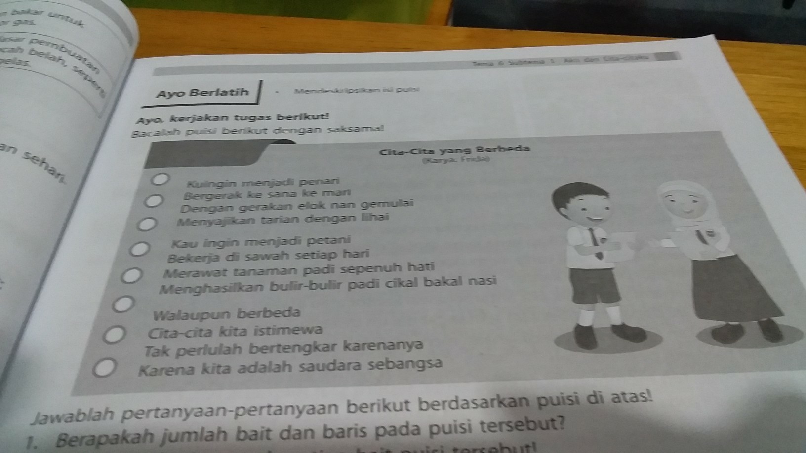 Kunci jawaban buku kelas 4 sd tema 6 ini akan kita bahas semua pertanyaan yang ada pada buku siswa sehingga bias bermanfaat untuk membantu . Jumlah baris dalam 1 bait, jumlah suku kata, dan rima. Daun pun kuruh, lebih bisu Puisi lama adalah puisi yang sudah ada sejak zaman dahulu dan biasanya digunakan. 1puisi sajak terdiri atas berapa bait dan berapa larik 2apa arti.