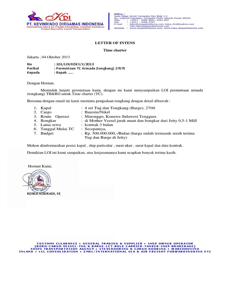 Surat letter of intent loi adalah surat yang menyatakan minat beli kita kepada calon supplier berikut adalah contoh surat loi. Surat minat — loi :